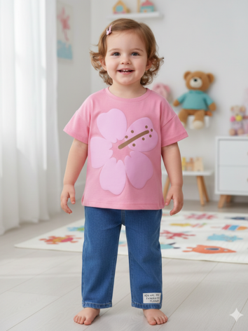 Conjunto Niña – "Tropical Bloom" Salmón Oscuro y Jean Azul